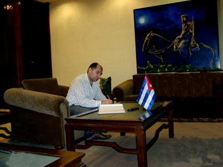 Tahsin Tarhan, Che anıtında anı defterini imzalarken.