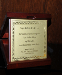Çayırova Belediye Başkanlığı'ndan Tahsin Tarhan İlköğretim Okulu'nun yapımı için minnet ve şükran plaketi.